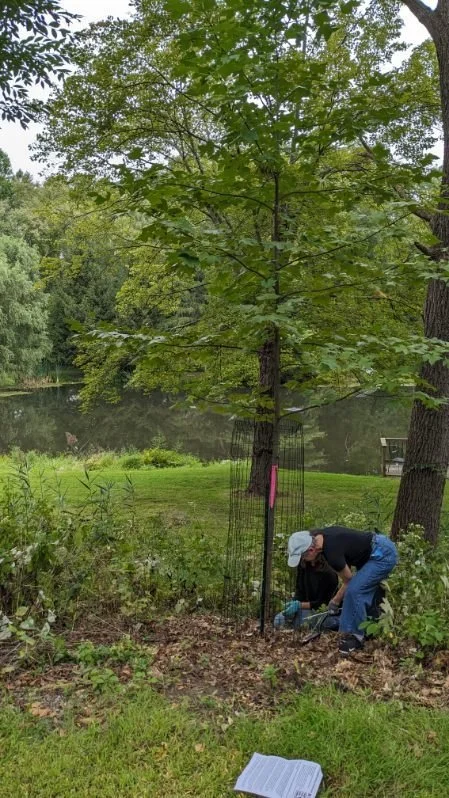 The Mount Tabor pond slope project is my own Rutgers Environmental Stewards project, started in 2025 with an initial flora and fauna inventory as well as a forest health assessment. The restoration area is a 100ft x 30ft slope between the volleyball court and the pond. The area has a wide diversity of sapling and mature trees native to northern New Jersey, but the majority of ground-level plants are invasive. The invasive plants, such as wineberry, Japanese knotweed, Japanese stiltgrass, and Phragmites (Common Reed) prevent the growth of plants that are native to New Jersey from establishing and growing on the slope, and they do not provide adequate cover or food for macro-fauna such as birds, mammals, and reptiles. The good news is that there are a number of native plants growing in the same area as well including Black walnut, Red maple, American Elm, White Ash, Skunk cabbage, and Native blackberries. I also made an initial effort to remove the Japanese knotweed, which is extremely persistent, difficult to remove even with chemical means, and may take multiple years to completely eradicate. I also worked with the Boys Scouts to manually dig out some of the thorny and prickly wineberry vines.